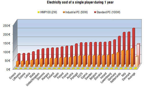 机场的HMP100是什么意思?betway必威官方home首先显示控制器是一个非常小的嵌入式和purpose-build设备。这意味着设备非常可靠,没有维护成本。其次,由于开放标准技术,它可以很容易地集成到现有的解决方案或被用来创建额外的应用程序为旅行者(即时通讯疏散方案,视听传播的流,触摸屏为kiosk应用程序集成RFID, GPS和3 g功能,等等)。HMP100不仅仅是一个简单的媒体播放器,它是一个平台,允许连接新闻、天气和机场信息。它可以用于way-finding、飞行表、广告和紧急通知。所有这一切都与这个小盒子不仅非常紧凑,可靠而且环保(只有2 w的功率消耗)。