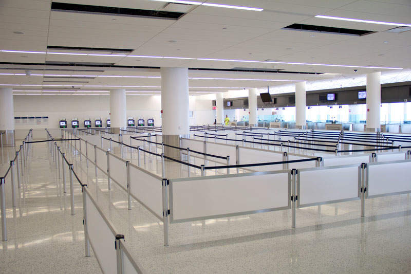 我们的产品目录包括排队线柱和面板屏障,摆动门,可伸缩壁挂式单元,6英寸高的路标,塔形和塔形标识,以及品牌标识顶饰,以及许多创新的安全产品,以确保整个航站楼区域的乘客高效流动。