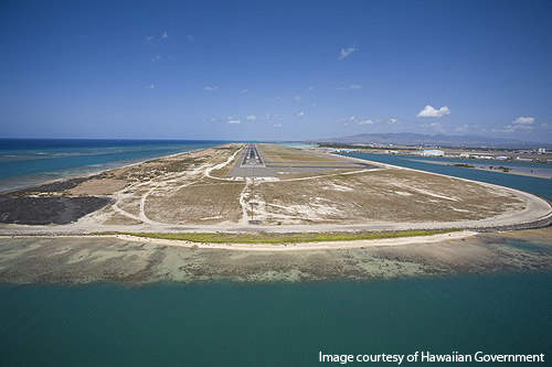礁跑道于1977年分三期建造,耗资8100万美元,是世界上第一条近海跑道。