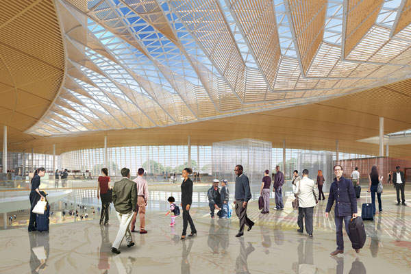 北航站楼由Pelli Clarke Pelli and Manning建筑事务所与新月城航空团队联合设计,该团队是Leo a Daly和Atkins的合资企业。Parsons Brinckerhoff将担任项目经理。