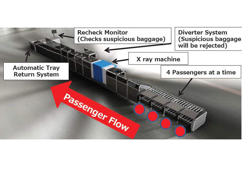 一条17米长的智能车道通过全身扫描仪和金属探测器(WTMDs)对乘客进行筛查。它还可以对乘客的行李进行筛选,行李由自动移动托盘在通道中移动,避免了人为搬运行李的需要。
